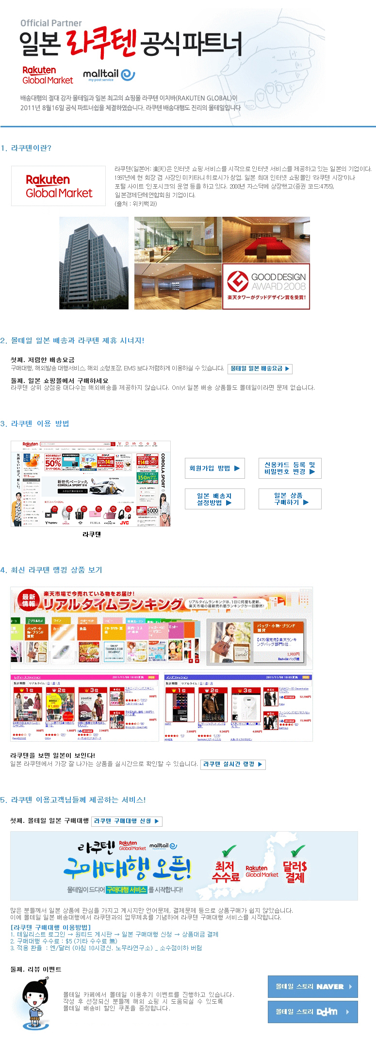 몰테일 일본 배송요금 라쿠텐 회원가입 방법 ▶ 신용카드 등록 및 비밀번호 변경 ▶ 일본 배송지 설정방법 ▶ 일본 상품 구매하기 ▶ 라쿠텐 실시간 랭킹 라쿠텐 구매대행 신청 몰테일 스토리 NEVER 몰테일 스토리 DAUM